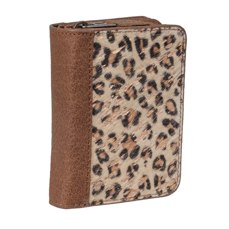 The Great Plains Soni Wallet features luxurious hair on hide with leopard print and copper foil accents. Finished with genuine full grain oiled and waxed leather makes this the perfect accessory for any outfit.