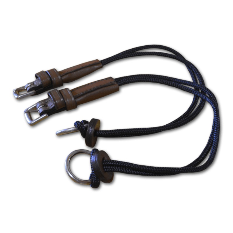 Made of high quality Stubben leather in combination with black nylon ropes. The rings and buckles are made of stainless steel. The rings are not stitched on to the nylon ropes but fixed with a rope loop only. Just slide the rope down through the gag bit, then loop the rope over the ring. No more screws or stitching! Dark Brown