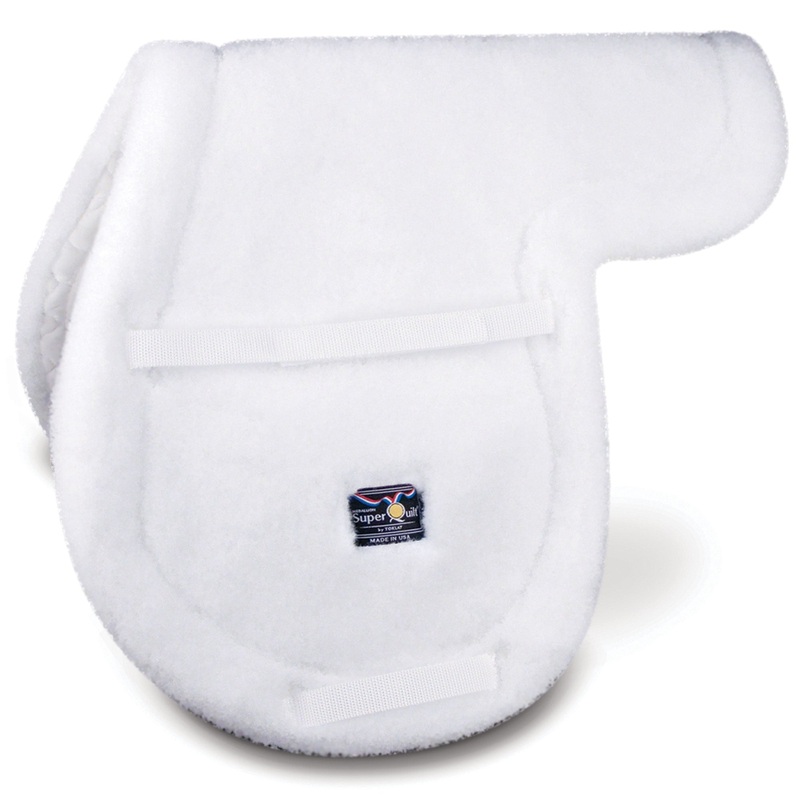 A great combination of fabrics make this our most popular saddle pad! Designed to fit most Child’s Close Contact saddles. High quality Medallion polyester fleece top is combined with a thick layer of breathable/wickable polyester batting quilted to a brushed 100% cotton fabric. Unlike saddle pads that use foam fillers which retain moisture and heat, the SuperQuilt will wick away moisture and ventilate constantly to keep your horse’s back cool. Made in the USA. EASYCARE: Machine washable and dryer safe. White only.