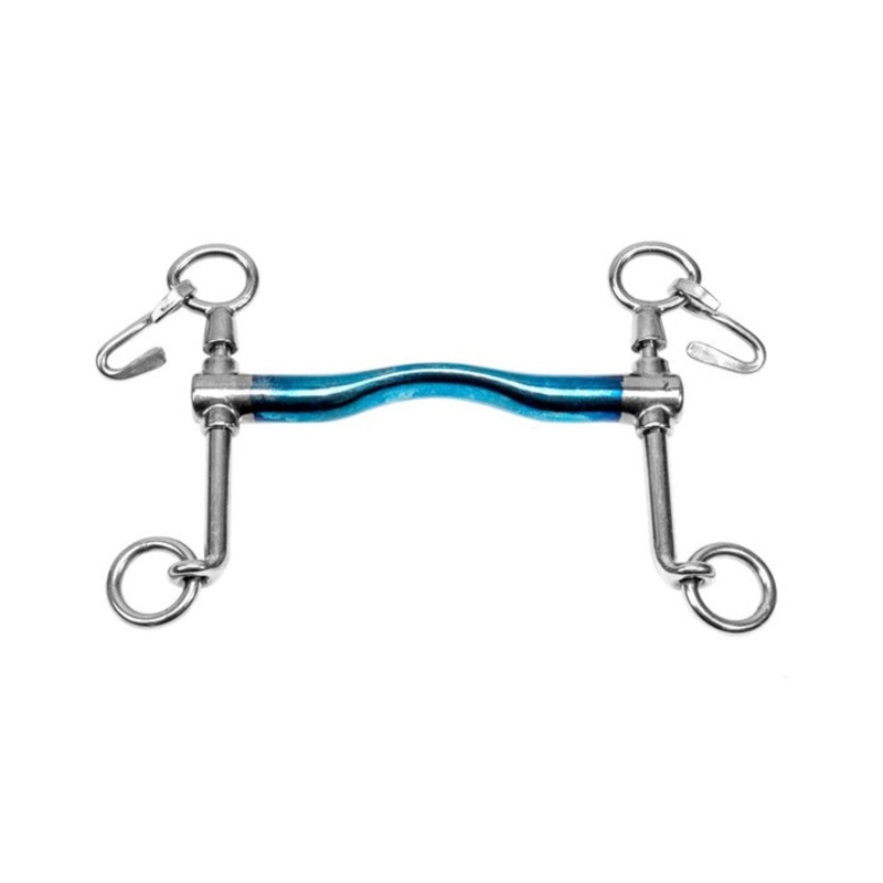 The sweet iron bits are made of steel and have a recognizable blue color. Due to contact with (air)moisture, Sweet Iron creates a rustfilm on the surface which has a sweet taste. As a result, the bit naturally encourages saliva production, which leads to more chewing activity and more foam will be built up and thus an overall better acceptance of the bit.