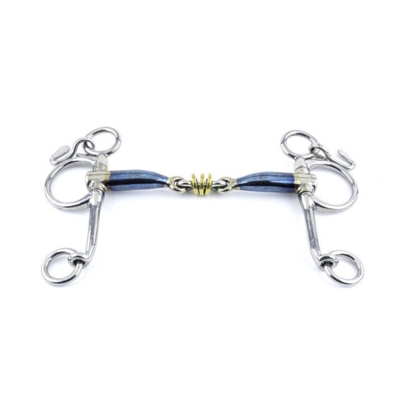 These bits act on three different points on the horse’s head: via the tongue on the lower jaw, through the leverage of the cheek pieces on the neck and via the curb chain on the lower jaw. The rein aid is distributed over the various pressure points on the horse’s head. This enables the rider to have better influence and control, e.g. with strong or stormy horses.