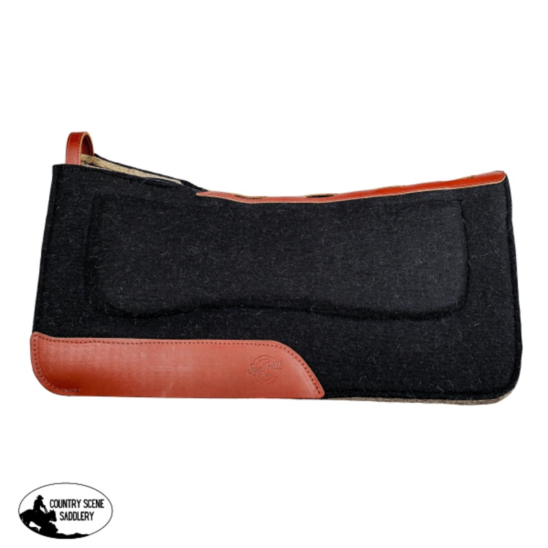 The Contoured Relief Air Pad is made from 18mm high density, premium wool felt with a sleek black & leather design and squared edge.This pad features additional height on the wither notch, a vented spine and hidden 1/2 inch shims to allow the perfect fit f