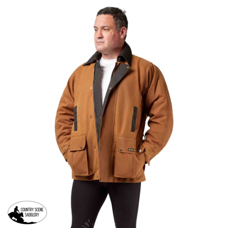 Syd Hill Oilskin Stockman Deluxe JacketSyd Hill Oilskin Stockman Deluxe Jacket waterprood & cotton lined, added leather collar. Available in black, brown and sand sizes XS XXL.