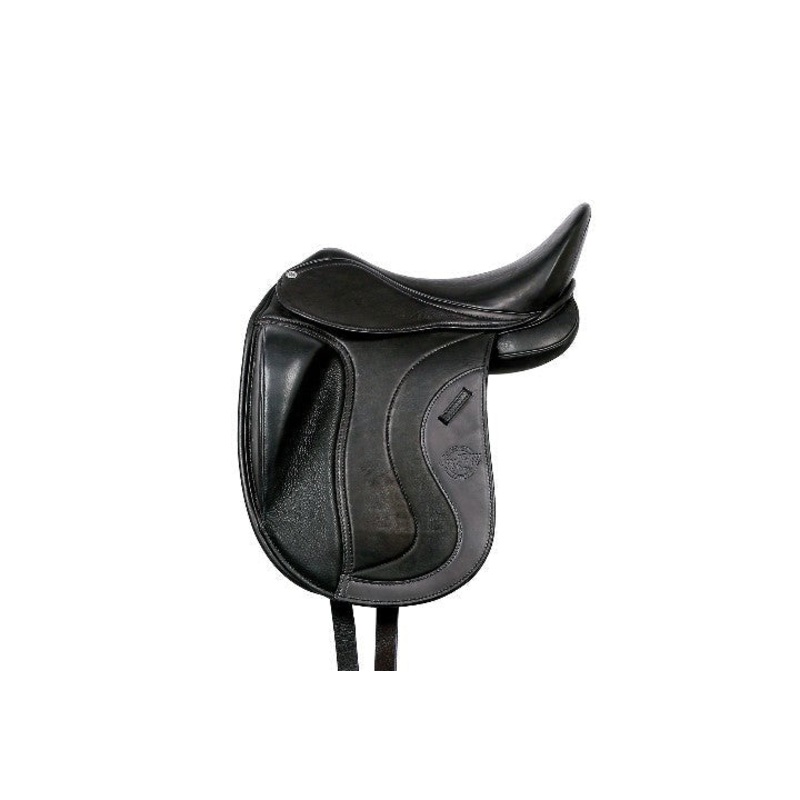 Syd Hill’s Regal Mono Dressage saddle combines optimum fit, balance and comfort for both horse and rider with pre formed knee blocks on a single saddle flap providing a secure, close contact ride.