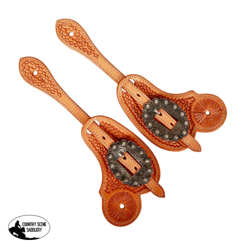Classic spur straps crafted from premium quality European leather with diamond tooling.