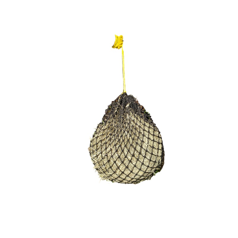 This slow feed hay net is ideal for miniature breeds. Approximately half the size of our small hay net and fits a 5 gallon bucket for easy loading. Best for smaller flakes from 2 string square bales.