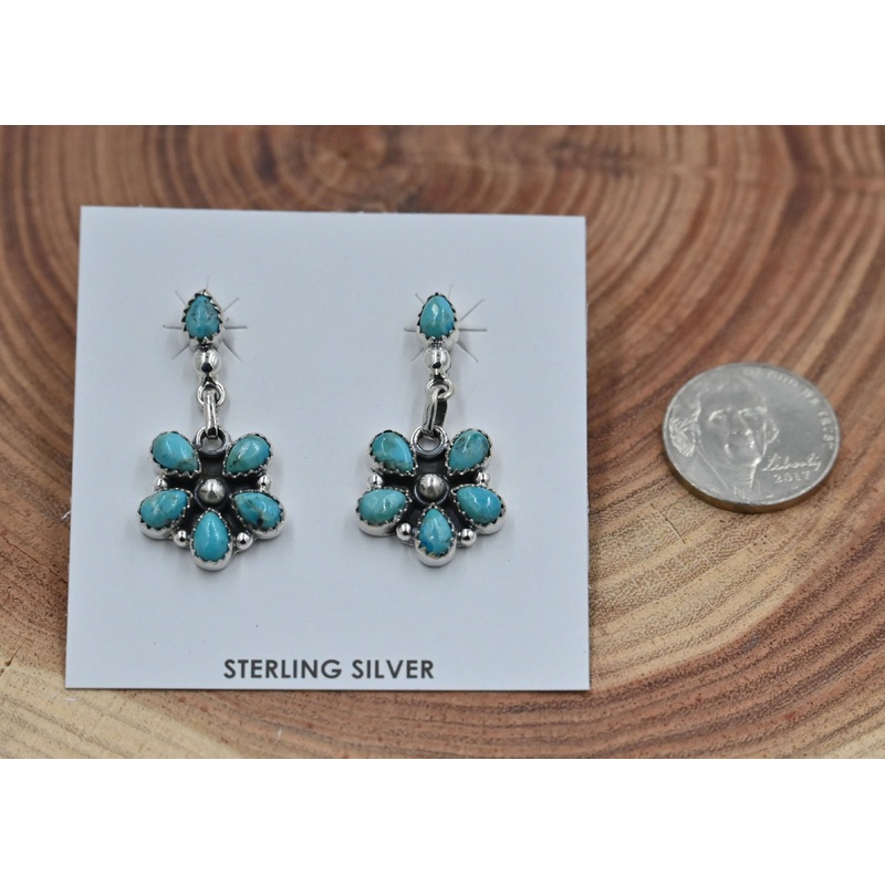 The Gemma 5 Stone Cluster Dangle Earrings5-stone cluster with a dangle design for added movement and sparkleSterling SilverKingman TurquoiseStamped Hada Collectionpost-back closure for easy wearFive dazzling stones arranged in a beautiful cluster, these ea