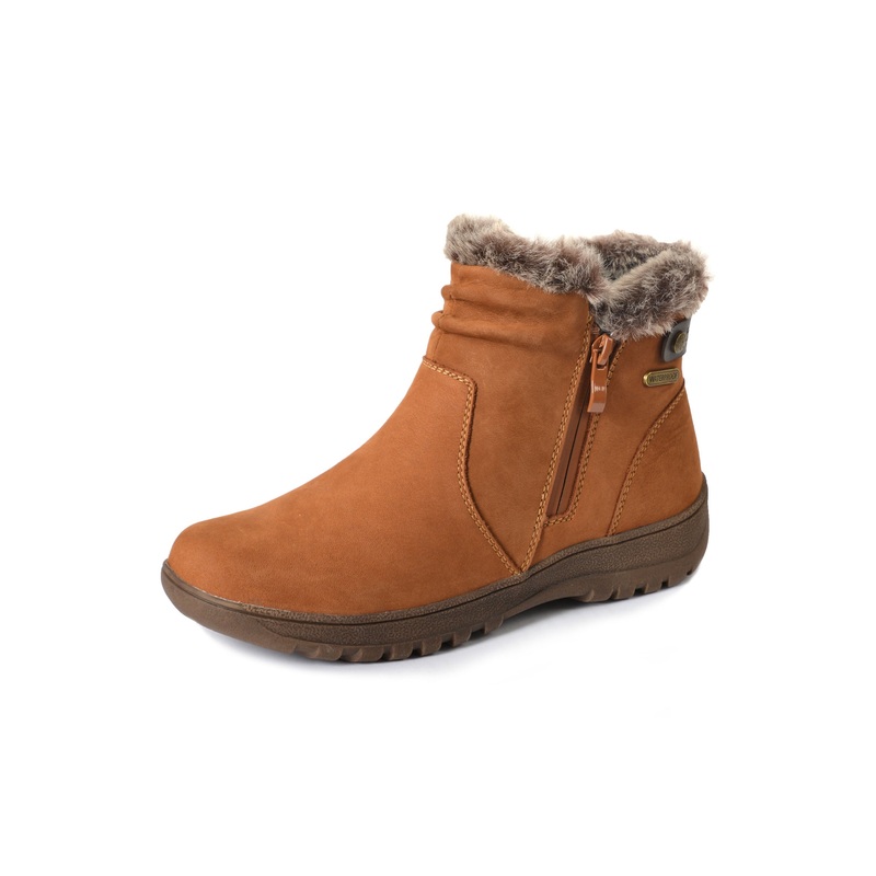 C Fit (AUS/US), nubuck waterproof leather upper, faux fur lined collar and lining, textured innersole for warmth and comfort, waterproof zip, durable rubber outsoleLeather Upper, Synthetic Lining, Rubber OutsoleColor:Tan