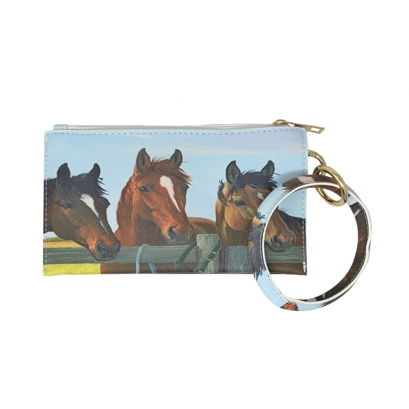 Three Brown Horses Printed Wristlet.Wristlet is lined and includes inside divided sections, wrist loop and zipper pocket. Features a zipper closure for privacy. Measures 8 x 4.5var TabbedPanels1=new Spry.Widget.TabbedPanels(TabbedPanels1);