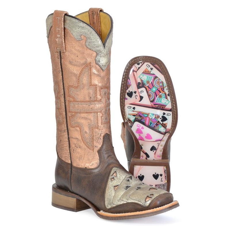 Tin Haul Ladies Four of A Kind Boots Features: Comfort Cushion Support System 13" Shaft Leather Lining 1 3/8" Walking Heel Square Toe