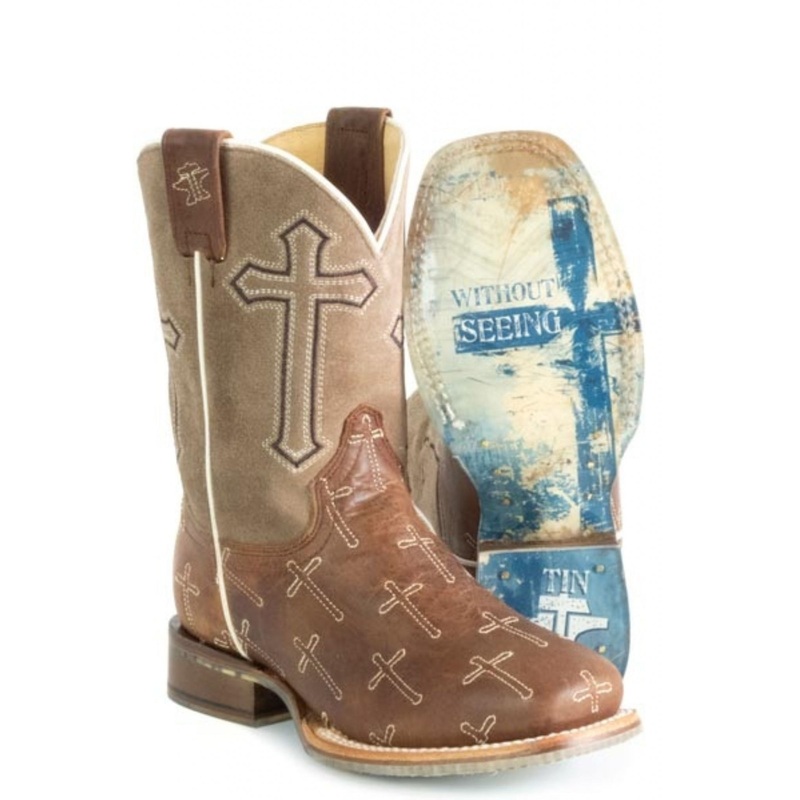 Tin Haul Little Kids Holy Son Square Toe BootsFeatures:Square Toe Crosses Pattern Stitched On Waxy Brown VampCross Embroidery On Tan Suede ShaftHandcrafted BootDouble Welt8" ShaftWalking HeelGrowth Spurt InsoleAll Leather LiningTransparent Obvious Sole