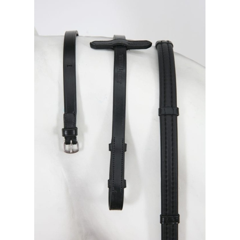 Rubber grip style reins wrapped in 3/8 thick no-slip ThinLine materialHand and martingale stopsLength: 60Color: BlackHook studsSoft, durable, comfortable yet secure gripSpecial order options: These reins also are available in Black 60, Brown 54, and Brown