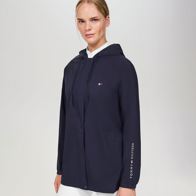 Embrace the elements in timeless style with the Tommy Hilfiger Bolton Packable Rain Jacket in Desert Sky navy.Designed for those who refuse to let the weather dictate their plans, this lightweight yet protective layer is a must-have for your tack room or h