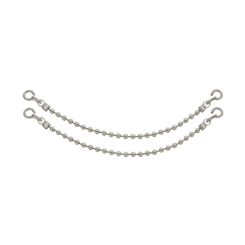 Long stainless steel ball rein chain featuring hooks on each end. Helps to add sensation in the horse's mouth.