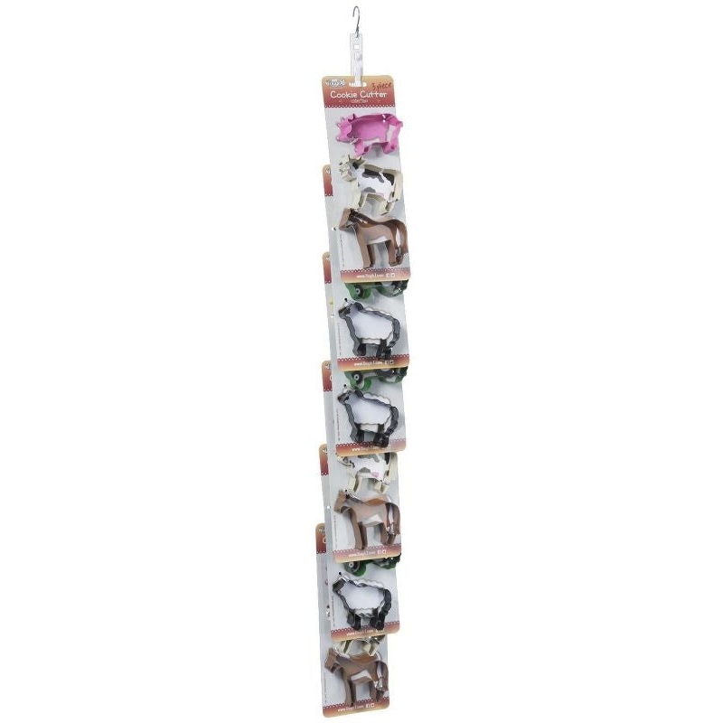 Favorite cutter shapes create fun cookies for celebrations and gifts! Metal cookie cutters are powder coated in fun colors. Food safe and FDA approved. 4 wide x 11 tall package. Available in 4 different sets: western, farm 1, farm 2, and horses.Size:Farm