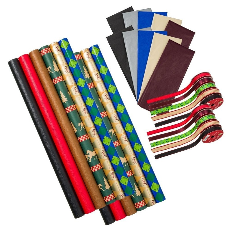 This large gift wrap set includes 8 assorted rolls of ribbon, 8 assorted tissue paper packs, and 8 assorted wrapping paper prints. This complete set has a great retail value to stock your store with a variety of gift wrap options that are great for many oc