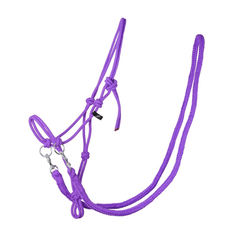 Touwhalsters zijn zeer veelzijdig, gebruik ze bijvoorbeeld voor grondwerk of om bitloos mee te rijden. Dit halster is voorzien van 2 metalen ringen en wordt geleverd met een dik koord voorzien van 2 clips om te gebruiken als teugels.