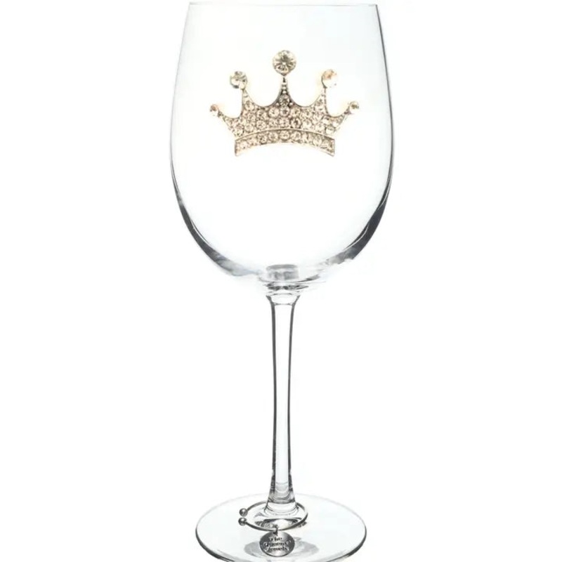 Introducing our enchanting Jeweled Tiara and Bit Stemmed Wine Glass, where elegance meets whimsy in a truly magical combination. Crafted with meticulous attention to detail, this glass features a sparkling tiara adorned with dazzling jewels, bringing a touch of royal sophistication to your wine-drinking experience. Feel like royalty as you sip your favorite wine from this exquisite glass, the jeweled tiara sparkling in the light with every graceful swirl. Whether you’re celebrating a special occasion, hosting a glamorous gathering, or simply indulging in a moment of luxury, our Jeweled Tiara Stemmed Wine Glass adds a touch of enchantment to any affair. Let your inner princess or queen shine as you raise this magnificent glass to your lips. With its captivating beauty and regal charm, our Jeweled Tiara Stemmed Wine Glass is sure to make every sip feel like a royal toast. Hand wash only