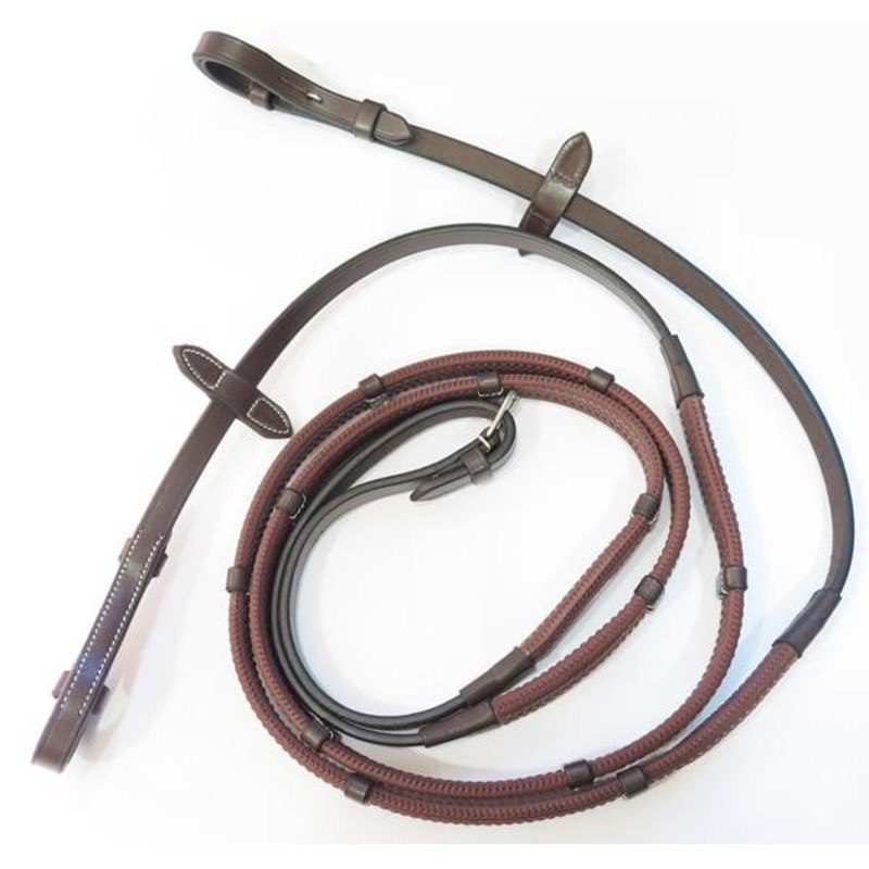Training Soft Rubber Reins with 6 Stops - 13mm rubber training reins which have 6 stoppers. Perfect for show jumping or daily training.Available in Black or HavanaSizes: Pony or Full