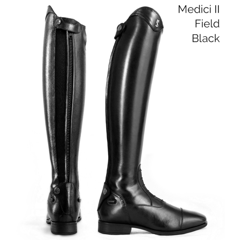 Introducing the newest boot in our Renaissance Collection, the Medici II. State-of the-art design, unmatched rider comfort and a customized, crafted fit all come together in this beautiFully sculpted boot. Its unique curve patterns envelope and enhance the shape of the riders leg for the ultimate in close contact.