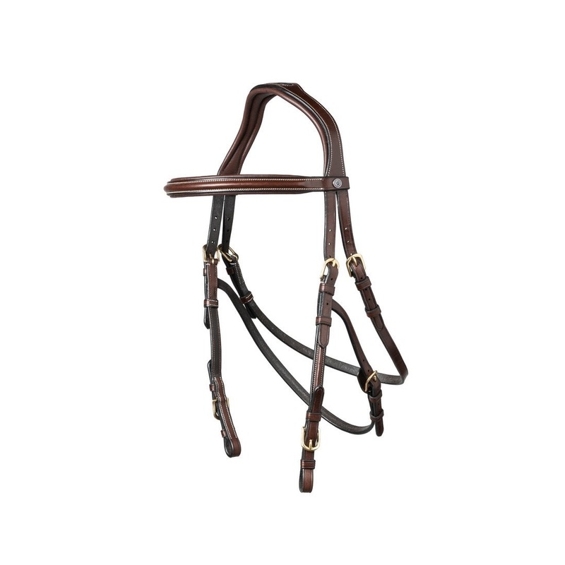 The TRUST Hickstead bridle can be combined with a TRUST hackamore bit. This bridle has an extra jaw strap to keep the bridle in place. The jaw strap features a buckle protector. The headpiece is anatomically shaped and cut back to allow more freedom at the
