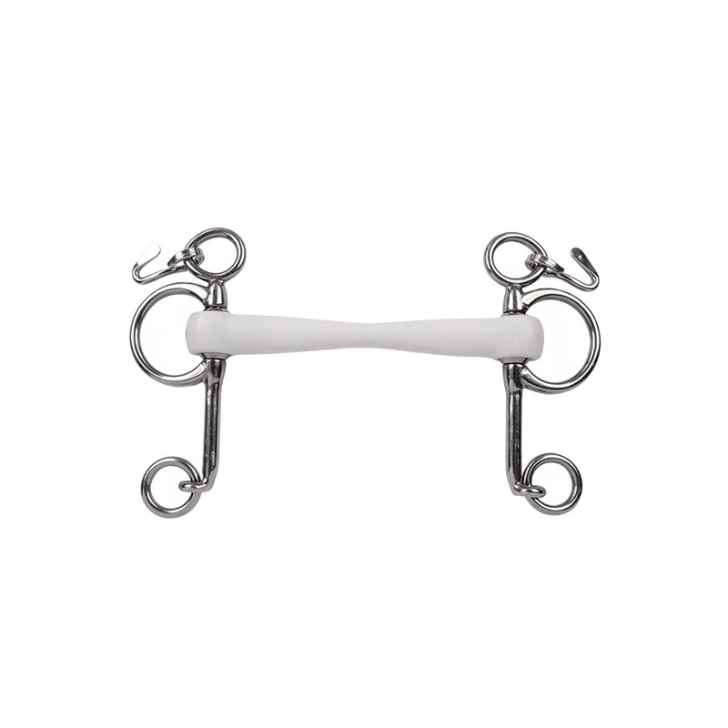 The flexible mouthpiece has a steel core to prevent breakage, and is softer than black rubber. Itis designed for horses with sensitive mouths, as it is extremely gentle to the horse’s mouth and tongue.
