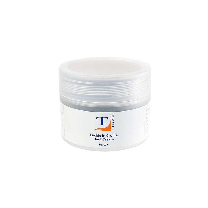 Tucci boot cream is apolishing creamdesigned tosoften,revitalize, andprotectthe leather of your boots.Use it on a daily basis,to keep your bootssupple and resistant. Its nourishingingredientsregenerate the leather after use. It is a conditioner for the leather as well as a polish.Tucci boot cream increases water repellency, sealingout excess moisture and balances hydration within the leather, improves flexibility, protects andlengthen the lifeof your boots. It does not merely give your boots a pretty shine, it is a remarkable product used andrecommended by riding professionals.