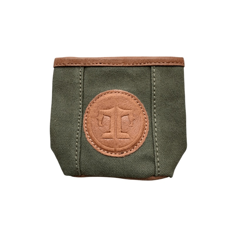 What pairs perfectly with every piece in the BARN SERIES...Our mini Barn Treat Pouch! Requested by trainer Jennifer Flowers, this useful magnet-closetreat pouch clips easily to belt or waist band to hold treats.Color: Olive canvas, saddle brown remnant lea