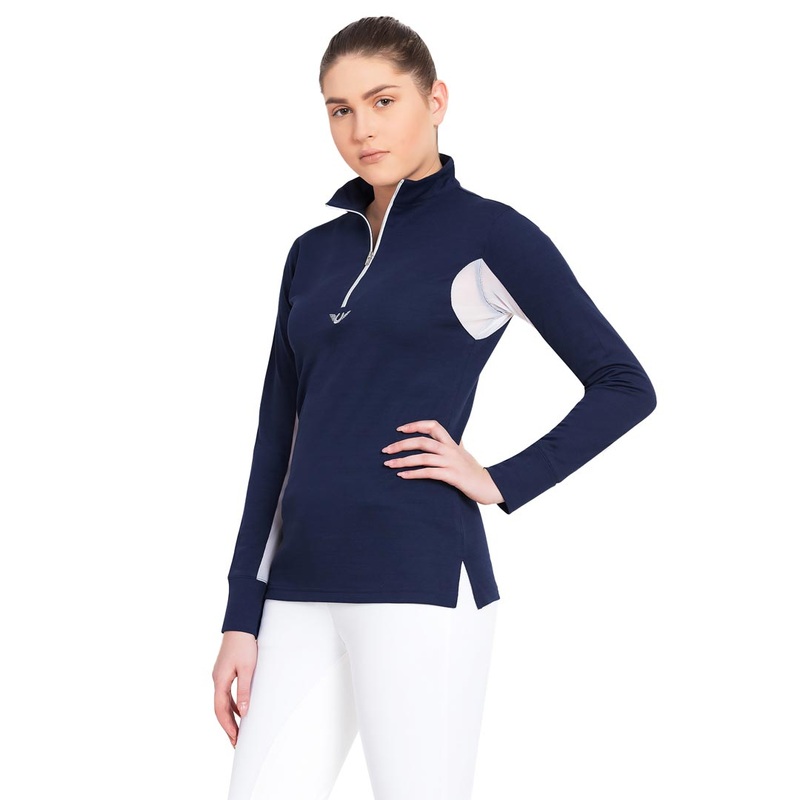 The TuffRider Ladies Long Sleeve Ventilated Technical Sport Shirt UV Protection, Quick-Dry, Mesh Undersleevesis a popular choice for hot weather riding. The combination of moisture wicking technical fabric and ventilated mesh on the underside of the arms g