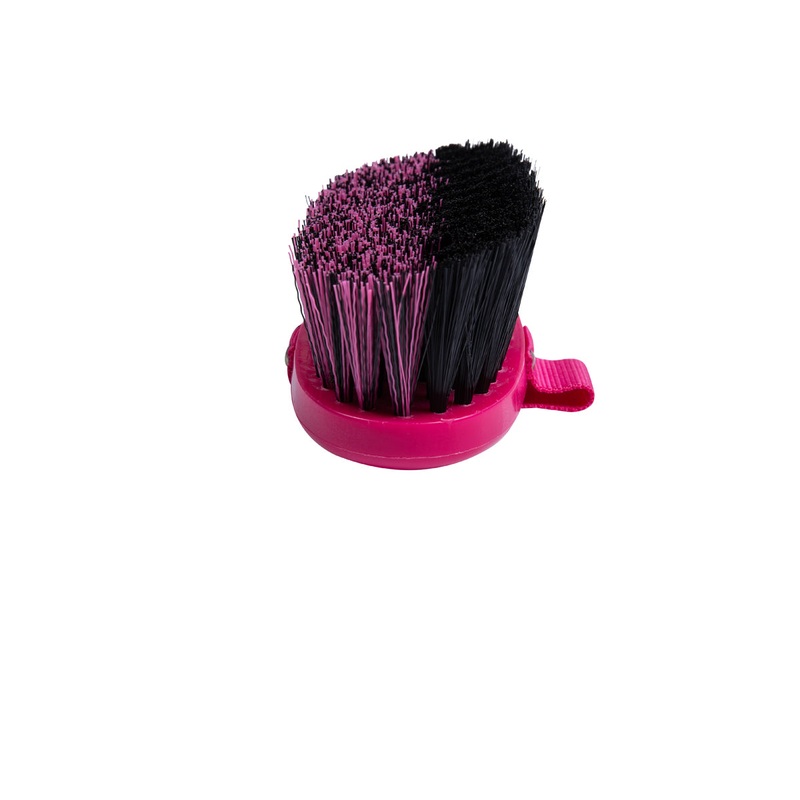 The TuffRider Plastic Body Brush is good for everyday use with short stiff bristles. The adjustable handle allows it to fit with any size hand. This brush comforms to the curves of the horse's body to brush off any loose hair effectively. It is comfortable