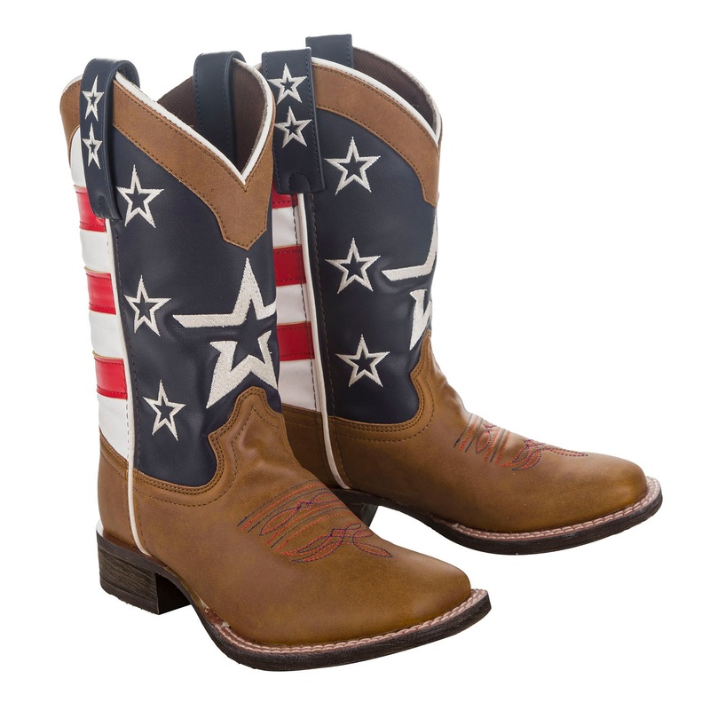 Add a stylish charm to the patriotic style of your little one in these American Flag Cowboy Western Boots from TuffRider. The upper is constructed with the finest man-made leather material, giving these boots a refined and rugged finish. The American Flag design adds a patriotic touch to these amazing cowboy boots and the stitched detailing creates a western and stylish appearance. Features a broad square-shaped toe to offer enhanced comfort to your child’s little toes for a pleasant stride. The rubber outsole helps improve the lifespan of these boots by protecting them from daily wear and tear. The blocked heel helps provide optimal stability to your child’s feet while walking on uneven ground.