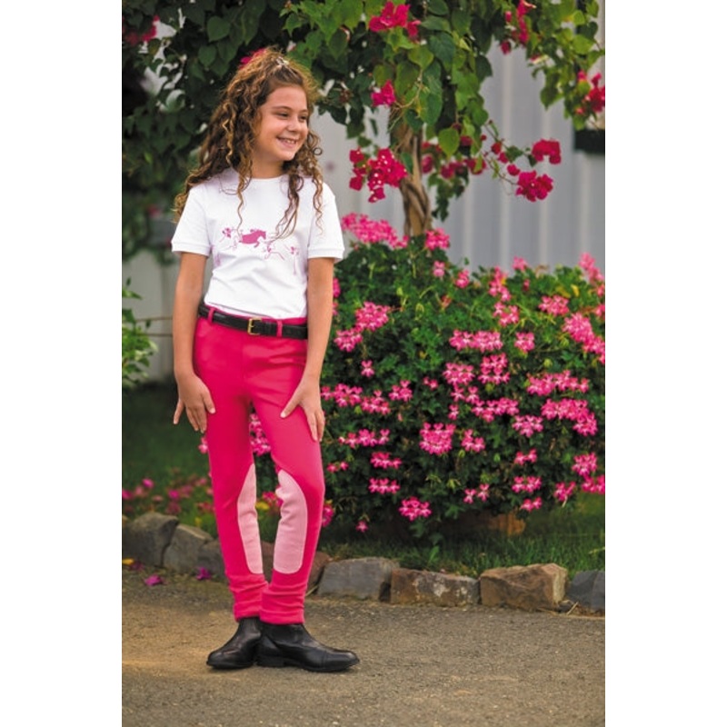 Kids will love this frolicking horse tee, made of soft spun cotton with tagless label. Wear with jeans to school or coordinate with our new Whimsical Horse Jods for riding fun.