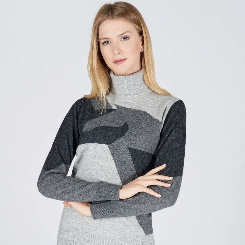 Introducing the Chatillon women’s turtle neck knitwear sweater and Short pyjama by Vestrum. Crafted from pure, extra fine wool, this sweater offers both warmth and comfort. It features a high neck and stretch cuffs for a cozy fit. The standout feature of this sweater is the mixed-color block design, which cleverly reveals the shape of a horse, showcasing Vestrumoriginal equestrian-inspired design.Round Neck Jumperlike this sweater are perfect for adding a touch of sophistication and style to any outfit. With its exceptional quality and attention to detail, the Chatillon sweater perfectly represents the unique attitude of VESTRUM. Stay stylish and warm with this luxurious turtleneck knitwear.