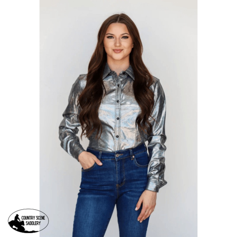 Brand: Ranch Dress'nPERFORMANCE RODEO SHIRTSilver Metallic FinishPoly Spandex Performance BlendLightweight & Comfortable3 Functional Top ButtonsPullover StyleDoes Not WrinkleMachine WashableUnisex SizedTrue to SizeADULT SIZINGX-Small (Women's Size 00-2)Sma