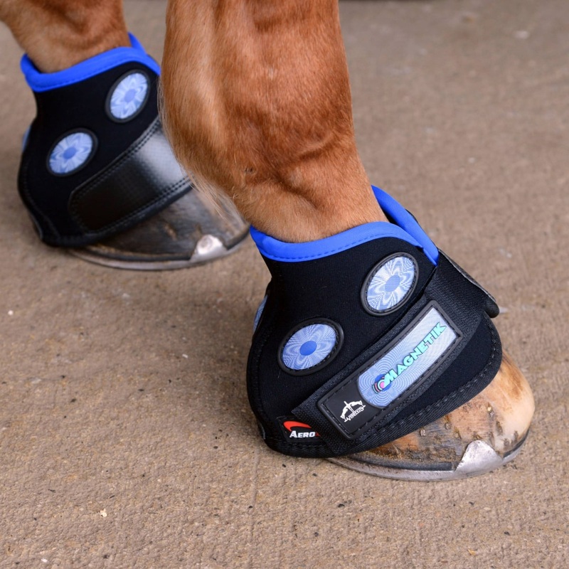 The Veredus Magnetik Hoof Boot is a therapeutic device, containing 10 neodymium magnets that develop a power of 2400 Gauss each. The magnets are distributed on the pastern, coronet and bulbs of the heel.A horse produces energy through the body cells using