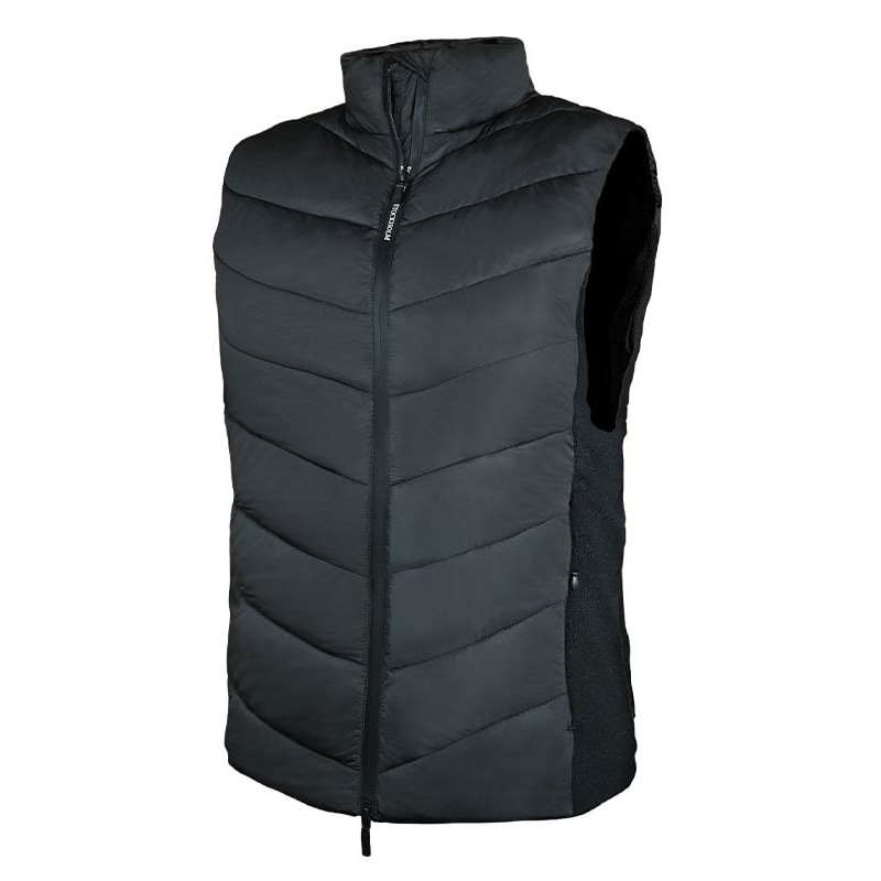 Elegant vest in a black color with black and white details. Made with water and wind resistant fabric and recycled polyester. Due to its amazing insulation the vest can handle temperatures down to 4 degrees Celsius/ 39 Fahrenheit, which makes it a perfect spring and fall vest. Designed with 2 way zipper at front making it perfect when you need the extra width at bottom while riding. Decorated with tone-on-tone Equestrian Stockholm logo on the back.