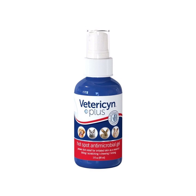 Vetericyn Plus Hot Spot Antimicrobial Hydrogel adheres to the skin to provide soothing relief to itchy, irritated skin suffering from repeated biting, scratching or licking and is safe to use on sensitive or problematic skin. The Hydrogel also forms a protective barrier over the hot spot, helping to keep it moist and free of irritation which can speed up healing time. Use it to cool and protect rashes, burns, sores, moist dermatitis, and other skin irritations. It will immediately help your pet feel better, speed up healing, and prevent future flare-ups For optimal hot spot care, we recommend first cleaning the area with our Vetericyn Plus Hot Spot Spray and then applying the Hot Spot Antimicrobial Hydrogel.