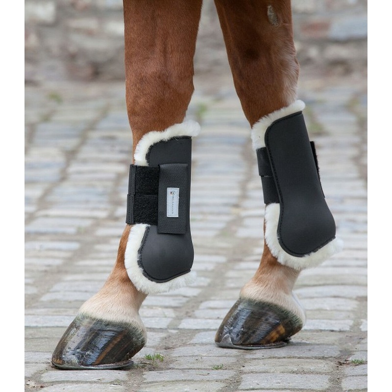 The perfect combination of natural lambskin and shock-absorbing, anatomically molded outer shell. Wide velcro straps provide a secure hold on the horse’s legs.