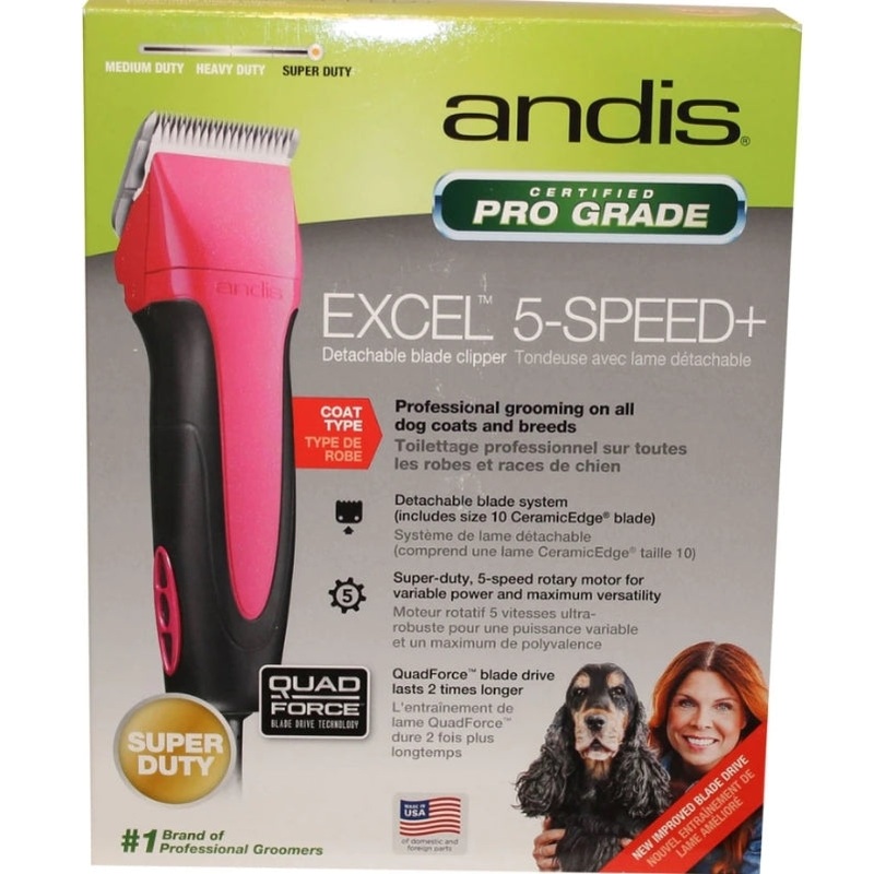 Featuring a super-duty, 5-speed rotary motor design, this clipper is great for complete animal grooming. QuadForce blade drive lasts two times longer and features blade speed up to 4,500 strokes per minute. Comes with CeramicEdge Size 10 Blade and clipper oil. Lower speeds offer cooler operation great for clipping sensitive areas while higher speeds offer a prettier coat finish.
