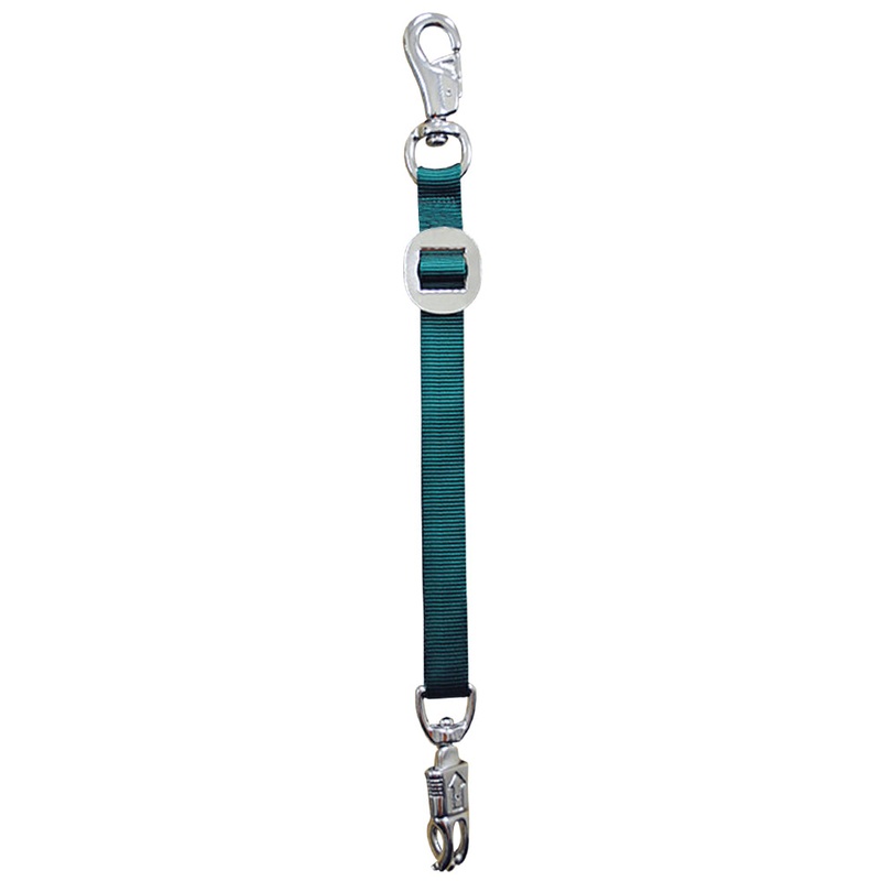 Constructed from 1″ nylon, this trailer tie has a bull snap on one end and a panic snap on the other. Measures 28″ long. Durable nickel plated hardware.